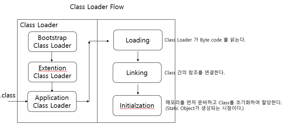 로드된 Class 들은 로딩 -> 링크 -> 초기화의 절차를 진행하게 된다.