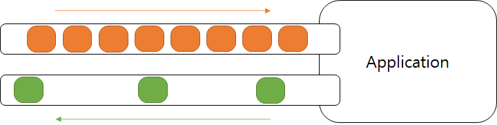 - 데이터를 받는 순서대로 쌓아 보관하다 일정량이 되면 한번에 전송한다.