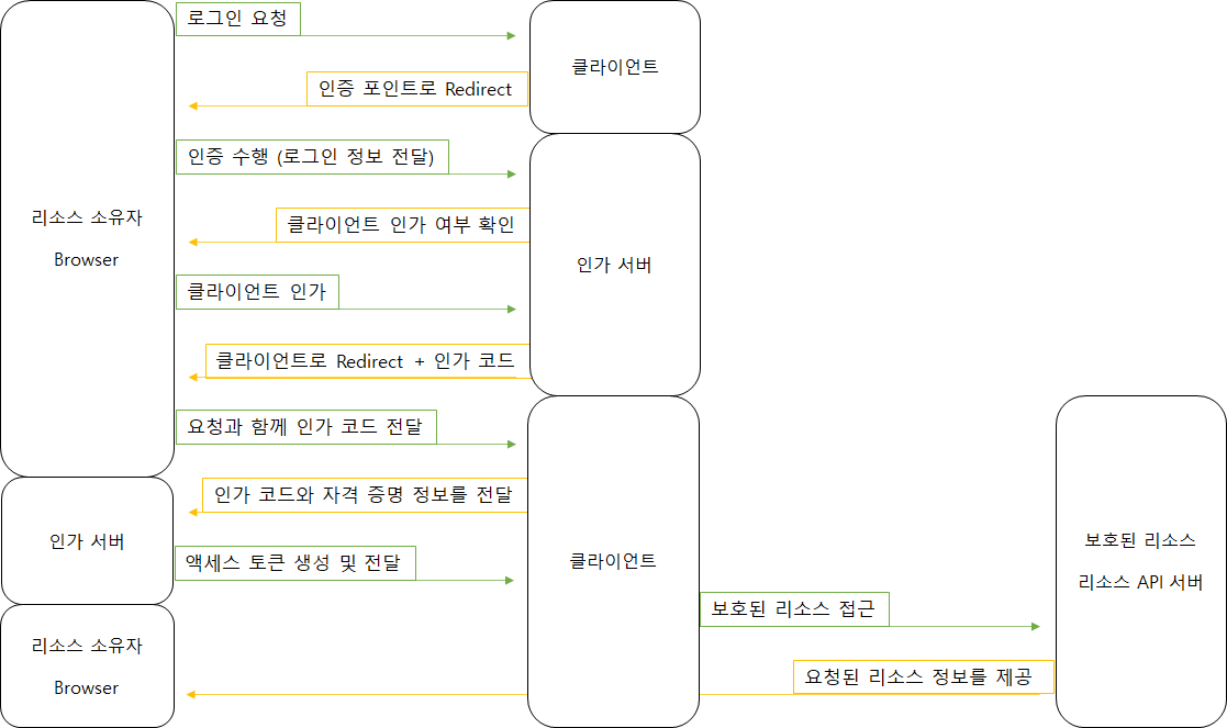ID와 password등을 이용해 Resource Client에 접근 권한을 인가한다. (액세스 토큰)
