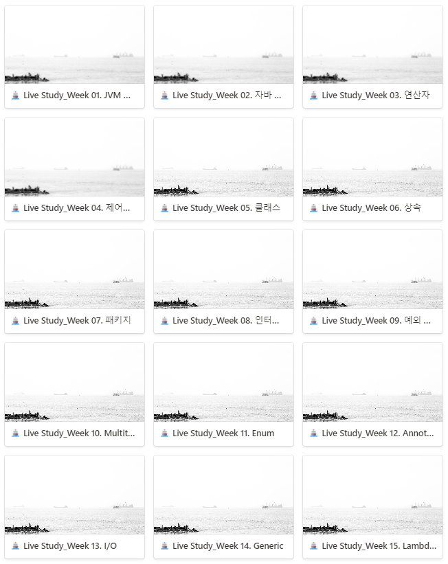 백기선 님의 라이브 스터디 시즌 1이 이번 주 (15주 차 진행)에 종료된다. 자바를 학습한 뒤에 잊어가던 여러 개념들을 복습하는데 도움이 되었고, 다른 사람들의 학습 포인트(요점?)를 보는 것과 매주 진행되는 라이브 리뷰 시간이 정말 의미있었던 것 같다.