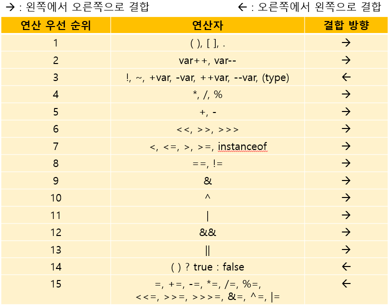 연산 대상의 수나 연산 방식에 따라서 명칭이 나뉘게 된다.