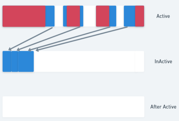 예시는 이렇게 작성되어 있지만 해당 방식의 GC는 일반적으로 Active 영역에 객체가 할당되지 못하는 경우 발생하게 되며, 논리적으로 실제 메모리 영역을 분할하기 때문에 메모리 영역의 크기만큼 객체를 할당할 수는 없습니다.