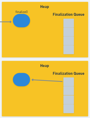 해당 메서드를 호출한 경우 해당 객체는 참조하던 변수가 사라지고 Finalization Queue를 이용하여 참조하게 되지만 바로 GC 되는 것은 아닙니다.
