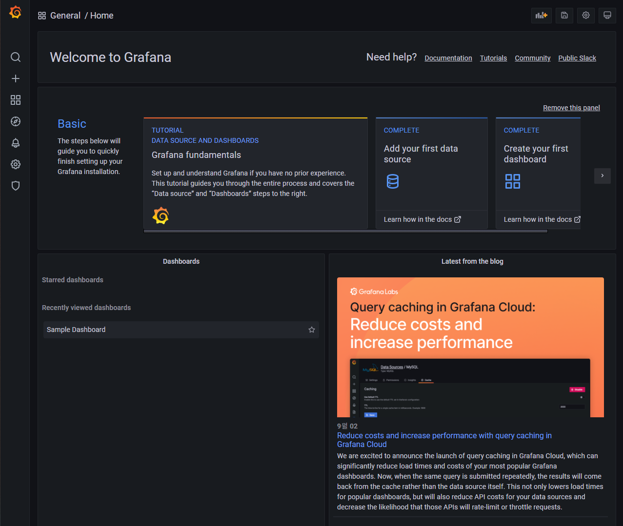 - Grafana의 기본 계정 정보는 admin / admin입니다.