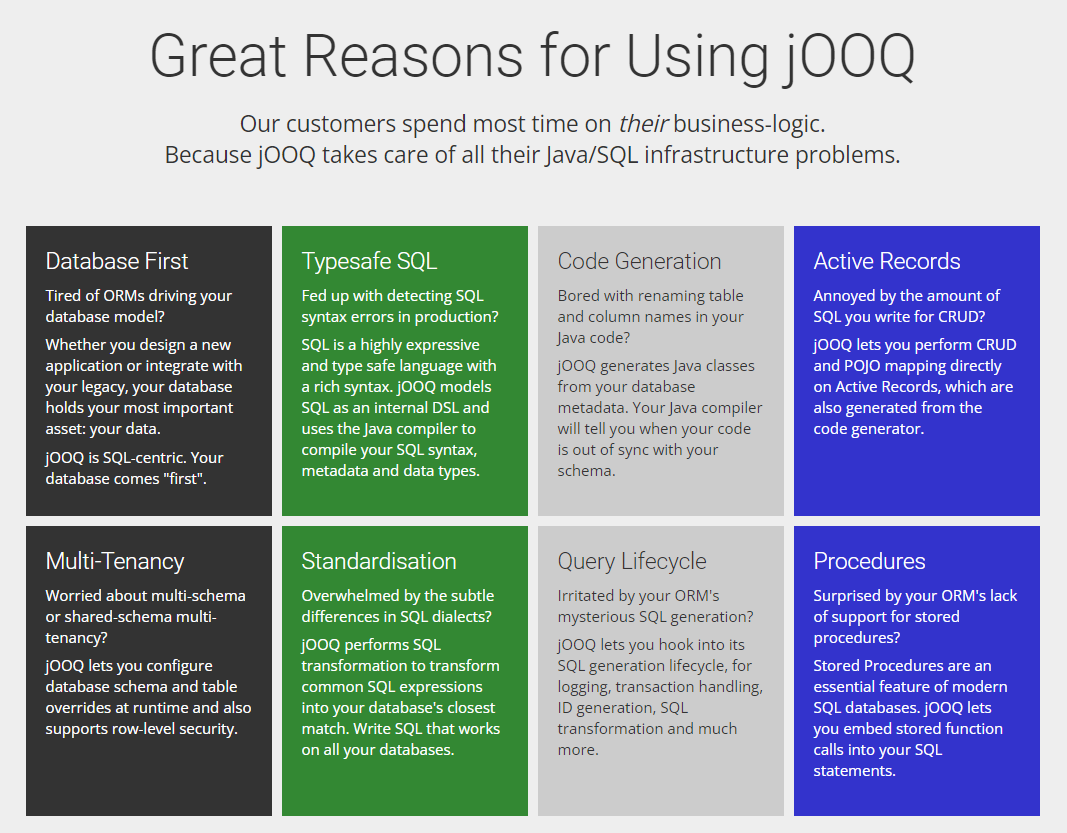- https://spring.io/why-spring, https://spring.io/projects/spring-framework, https://spring.io/projects/spring-boot, https://www.jooq.org/, https://mapstruct.org/ ...