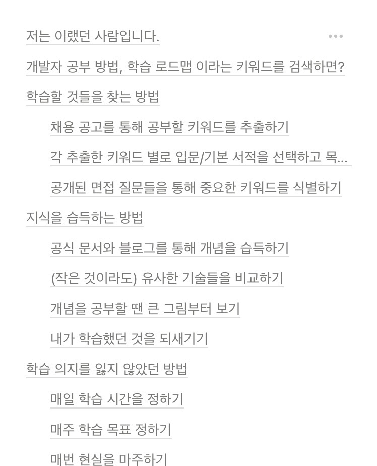 개발자 공부 방법, 학습 로드맵이라는 키워드를 검색하면?