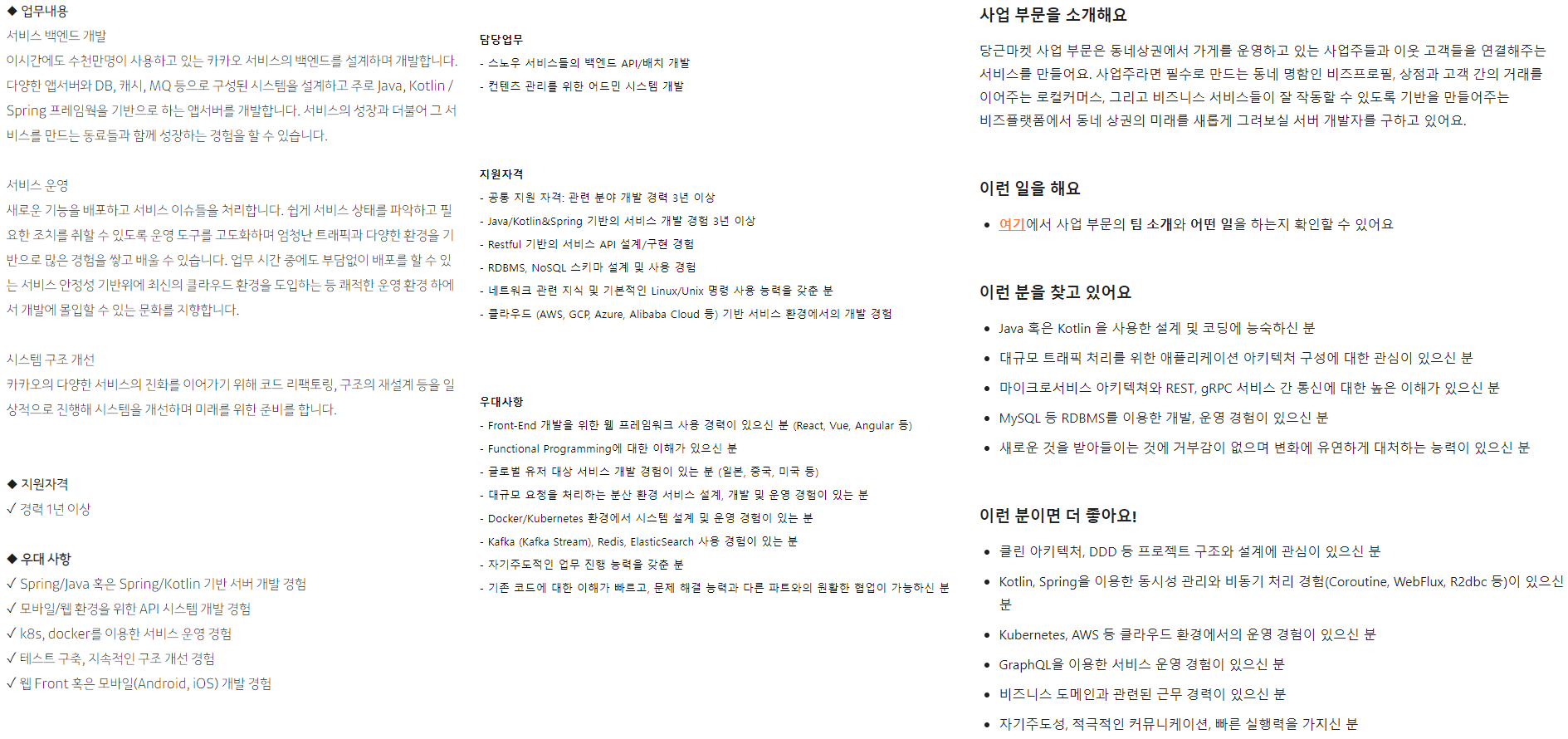 - 예시로 사용되는 공고는 카카오, 네이버 스노우, 당근 마켓입니다.
