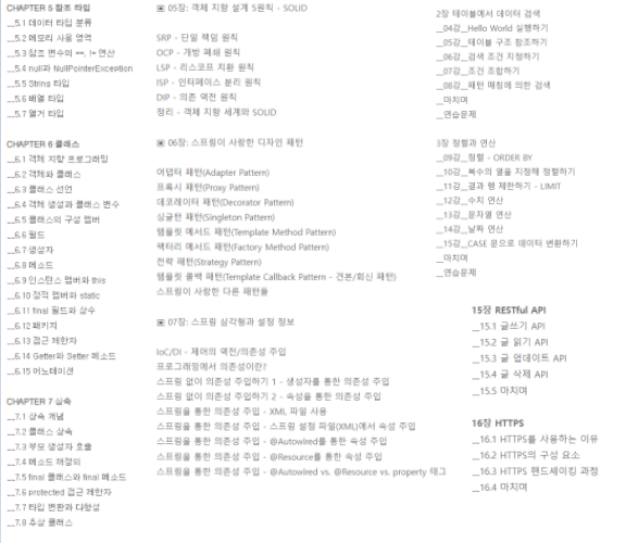 - 목차를 이용하여 학습 흐름을 결정하고 공부하는 것은 의미 없이 소모되는 시간을 줄일 수 있는 방법 중 하나입니다.