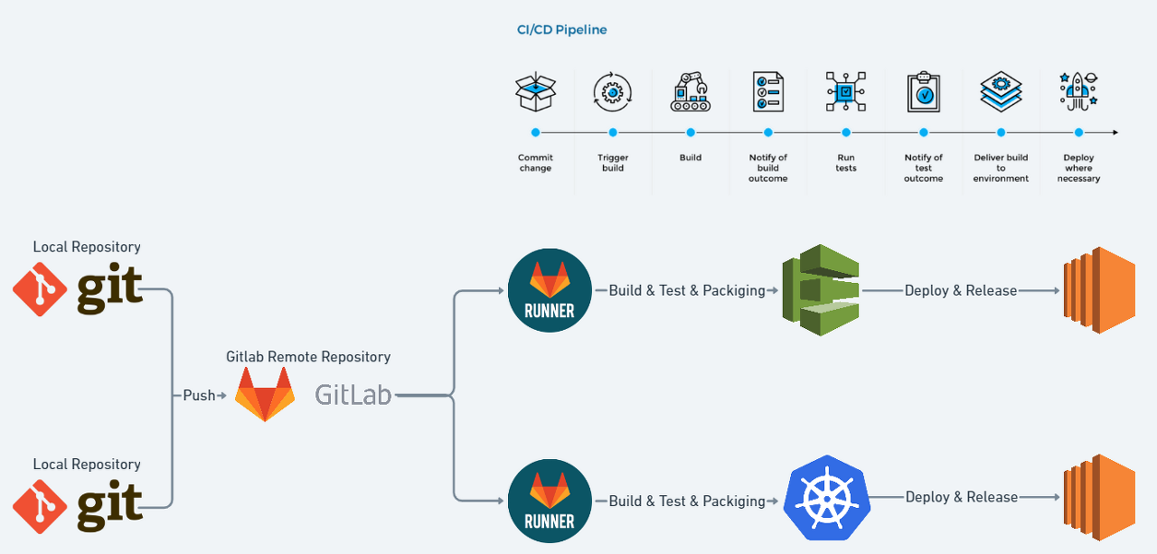 - 최소한의 리소스로 변경된 사항을 빠르게 각각의 환경(Dev, Test, Stage, Production)으로 출시하고 검증하는 것을 목표로 합니다.